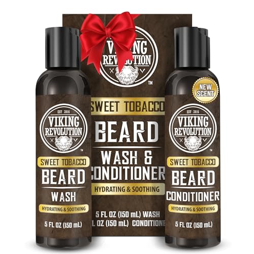 Viking Revolution Beard Wash and Beard Conditioner for Men with Argan Oil and Jojoba Oil – Beard Softener and Strengthener Beard Care Beard Shampoo and Conditioner with Beard Oil (5oz, Sweet Tobacco)