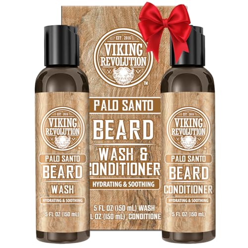 Viking Revolution Beard Wash and Beard Conditioner for Men with Argan Oil and Jojoba Oil – Beard Softener and Strengthener Beard Care Beard Shampoo and Conditioner with Ginseng Root (5oz, Palo Santo)
